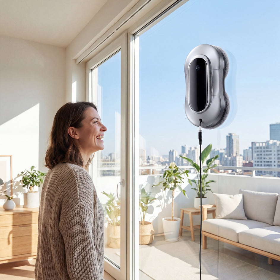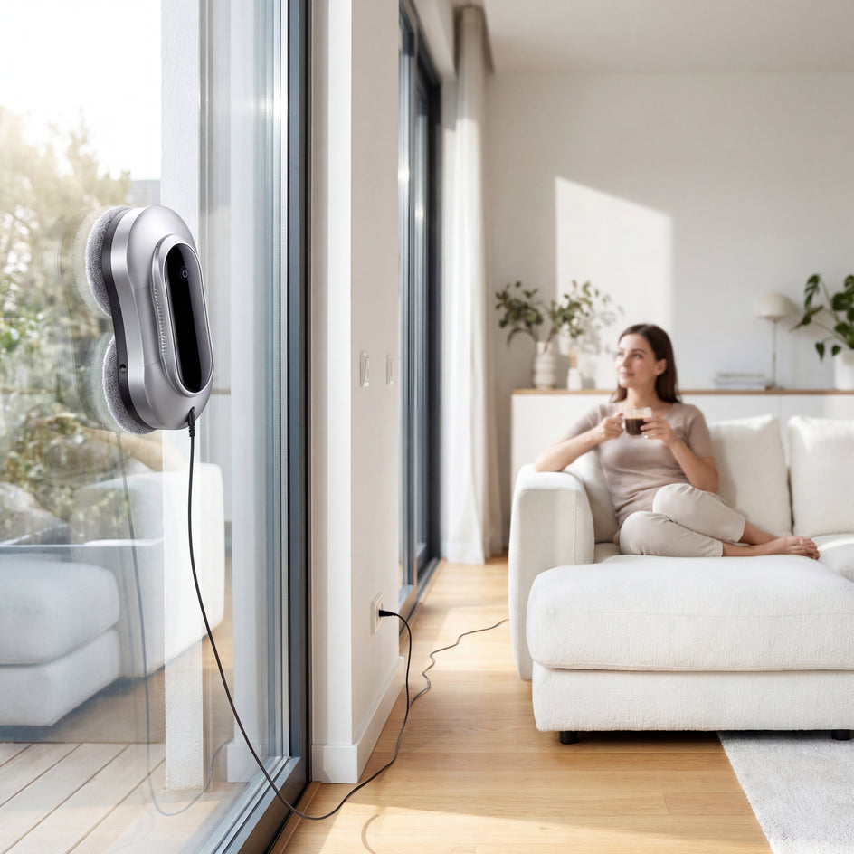 Le robot lave-vitre qui fait tout seul. Aspiration, spray, nettoyage pendant que vous profitez de votre temps.